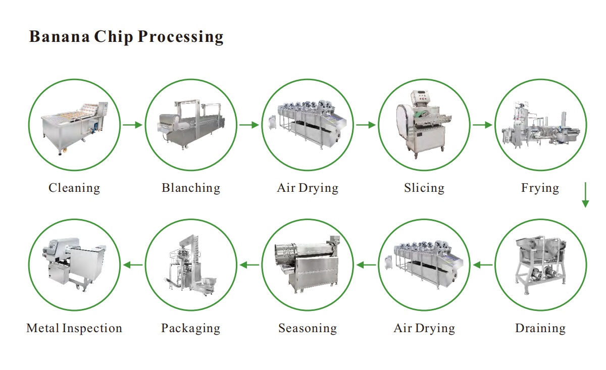 | Banana Slicing Machine | Slice to desired thickness | Slice thickness 0.5–5 mm |