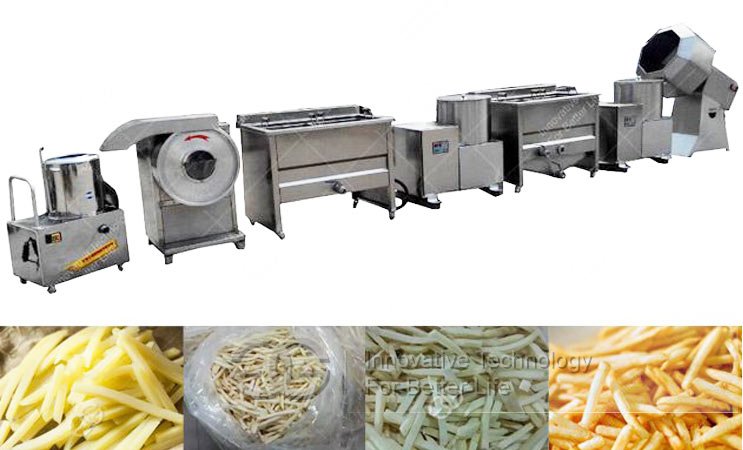 french fries making line is specially designed for small and medium scale potato chips manufacturers. We offer three different models 50 kg/h, 100 kg/h, and 200 kg/h for you. This potato chips line is lower in price and high efficiency, and it is your best choice for processing potato chips. By changing the cutter machine, you can also make potato chips or other shapes of fries. It is known to us all that potato chips business is the most-lasting business now and forever.