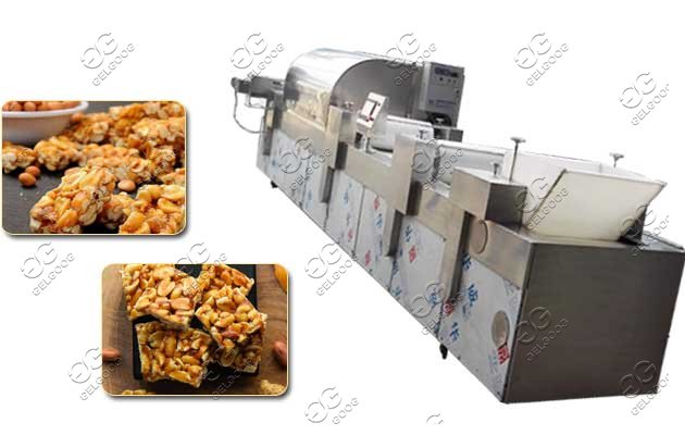 peanut brittle bar production line is mainly use for making peanut brittle bar and other nut bars. The production line include:peanut roaster, peanut peeling machine, sugar cooking machine, mixing machine, forming machine and packing machine.