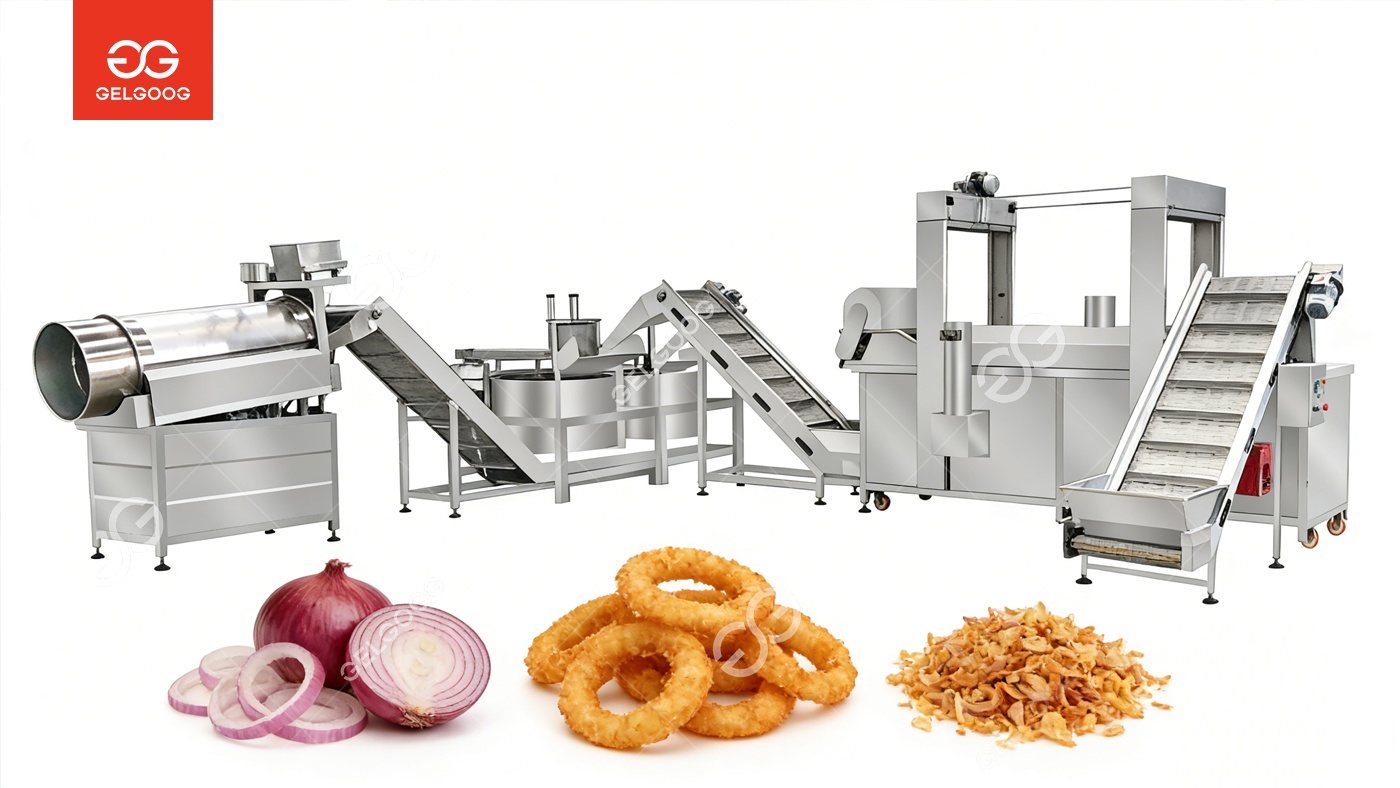 A complete onion ring production line integrates multiple processing stages into one continuous workflow. Each stage plays a specific role in ensuring uniform texture and appearance.